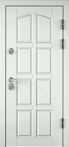 Железная входная дверь в частный дом софт белого цвета №1 — это стильное и практичное решение для вашего дома. Она идеально впишется в любой интерьер благодаря элегантному белому цвету и высококачественной отделке. Внешняя поверхность двери покрыта порошковым термонапылением, которое придает ей устойчивость к внешним воздействиям и повреждениям. Внутреннее покрытие выполнено из плиты МДФ, что добавляет прочности и долговечности. Металлическая конструкция с листом толщиной 2 мм и усиленными ребрами жесткости на основе профильных труб 40х25 мм гарантирует надежность и безопасность. Два контура резинового уплотнителя обеспечивают отличную герметичность. Дверь оснащена двумя замками с тремя ригелями, что повышает уровень защиты. Также предусмотрена возможность добавления зеркала, стеклопакета и кованых элементов для более индивидуального внешнего вида. Железная входная дверь в частный дом софт белого цвета №1 от производителя: быстрое изготовление и монтаж в Фряново, индивидуальные размеры, широкий выбор материалов и фурнитуры, официальная гарантия до 10 лет.