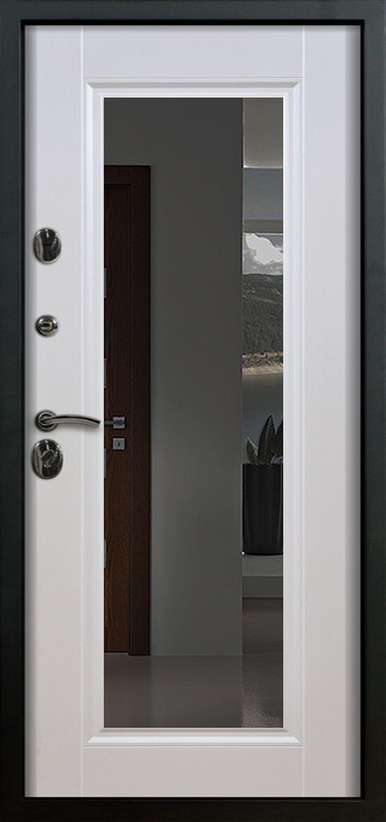Металлическая входная дверь с зеркалом внутри №1 создана как универсальное решение для дома, квартиры или офиса, где важны и безопасность, и комфорт. Каркас выполнен из прочной профильной трубы с металлическим листом толщиной 2 мм и рёбрами жёсткости, что обеспечивает устойчивость к механическим воздействиям и долгий срок службы. Снаружи дверь покрыта порошковой окраской, стойкой к атмосферным влияниям и царапинам, а изнутри отделана МДФ с ПВХ-покрытием, которое сохраняет свежий вид даже при интенсивной эксплуатации. Встроенное зеркало превращает полотно в практичный элемент интерьера: оно визуально расширяет пространство прихожей и избавляет от лишних предметов мебели. Два контура уплотнителей защищают от пыли и сквозняков, а блокираторы усиливают общую надёжность конструкции. Модель не оснащена терморазрывом, зато отличается продуманным балансом практичности и доступной цены, оставаясь удобным вариантом для повседневного использования. Металлическая входная дверь с зеркалом внутри №1 от производителя: быстрое изготовление и монтаж в Фряново, индивидуальные размеры, широкий выбор материалов и фурнитуры, официальная гарантия до 10 лет.
