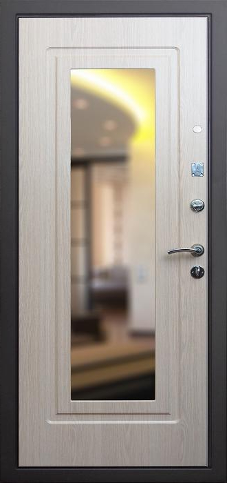 Эта модель создана для тех, кто ценит не только прочность, но и практичность в повседневном использовании. Стальной каркас из профильной трубы и лист металла толщиной 2 мм с рёбрами жёсткости формируют надёжную основу, способную выдерживать серьёзные нагрузки. Снаружи дверь защищена порошковым покрытием, которое устойчиво к влаге, солнцу и механическим повреждениям, а изнутри отделана МДФ-накладкой, придающей интерьеру уют и аккуратность. В центре конструкции внимание привлекает зеркало — удобная деталь, которая избавляет от необходимости в дополнительном настенном аксессуаре и одновременно делает пространство визуально просторнее. Именно здесь название модели — металлическая дверь с зеркалом в дом №2 — обретает своё значение, сочетая функциональность с эстетикой. Для повышения безопасности предусмотрены два замка российского производства с независимыми системами запирания, а также блокираторы. Два контура уплотнителя защищают от сквозняков и пыли, а возможность выбрать направление открывания делает установку универсальной. Металлическая дверь с зеркалом в дом №2 от производителя: быстрое изготовление и монтаж в Фряново, индивидуальные размеры, широкий выбор материалов и фурнитуры, официальная гарантия до 10 лет.