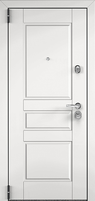 Белая металлическая дверь входная для дома №33 выделяется своим свежим и современным обликом. Универсальный белый цвет делает её уместной как в частном коттедже, так и в квартире или офисе, визуально добавляя простора и подчеркивая аккуратность фасада или интерьера. Конструкция двери основана на стальном листе толщиной 2 мм и усилена профильными трубами, что гарантирует надежность и устойчивость к нагрузкам. Важная особенность модели — наличие терморазрыва в полотне и коробке: благодаря этому дверь не промерзает в зимний период, исключается конденсат и сохраняется комфорт внутри помещения. Внешняя и внутренняя отделка выполнена из МДФ с ПВХ-покрытием, которое защищает поверхность от влаги и механических повреждений, сохраняя первозданный вид надолго. Два контура уплотнителя обеспечивают герметичность и дополнительную защиту от сквозняков. Эта дверь удачно сочетает эстетику и практичность, создавая надежный вход в любое жилище. Белая металлическая дверь входная для дома №33 от производителя: быстрое изготовление и монтаж в Фряново, индивидуальные размеры, широкий выбор материалов и фурнитуры, официальная гарантия до 10 лет.