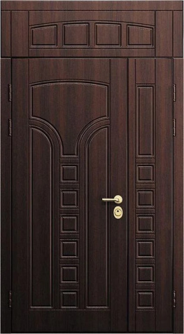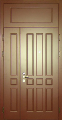 Входная дверь с остекленной фрамугой №1 привлекает внимание благодаря стильному и современному дизайну. Ее внешняя и внутренняя отделка из МДФ выглядит элегантно и долговечно, а также устойчива к механическим повреждениям, таким как царапины и вмятины. Каркас из профильной трубы и металл толщиной 2 мм гарантируют прочность и надежность. Наличие фрамуги позволяет создать эффектное освещение и визуально расширяет пространство, при этом сохранение теплоизоляции обеспечено двумя контурами резинового уплотнителя. Блокираторы и качественные замки, такие как Просам и Мосрентген, надежно защищают от взлома. Возможность дополнить дверь стеклопакетом, зеркалом или коваными элементами делает эту модель еще более универсальной для различных интерьеров. Входная дверь с остекленной фрамугой №1 от производителя: быстрое изготовление и монтаж в Фряново, индивидуальные размеры, широкий выбор материалов и фурнитуры, официальная гарантия до 10 лет.
