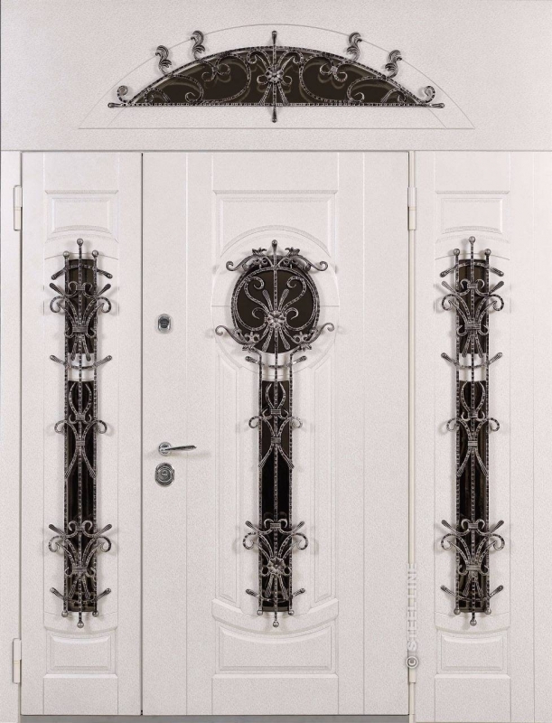 Входная дверь с кованой ручкой и фрамугой №6 представляет собой элегантное и надежное решение для тех, кто ценит не только безопасность, но и стиль. Эта модель идеально подойдет для оформления парадных входов в дома и офисы. Внешняя отделка из плиты МДФ придает двери современный и чистый вид, который сохраняется долго благодаря стойкости к внешним воздействиям. Благодаря профильной трубе с толщиной металла 2 мм и ребрам жесткости, конструкция двери гарантирует прочность и долговечность. Дополнительный элемент — кованая ручка, которая добавляет изысканности и подчеркивает высокий класс изделия. Стандартная комплектация не включает шумо- и теплоизоляцию, однако она может быть установлена по желанию. Резиновый уплотнитель с двумя контурами обеспечит хорошую герметичность, защищая от ветра и пыли. Подходит для установки как в частных домах, так и в офисах, привлекая внимание своим необычным и стильным дизайном. Входная дверь с кованой ручкой и фрамугой №6 от производителя: быстрое изготовление и монтаж в Фряново, индивидуальные размеры, широкий выбор материалов и фурнитуры, официальная гарантия до 10 лет.