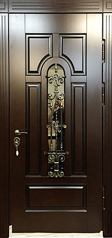 Входная дверь со стеклом и ковкой для загородного дома №16 создана для тех, кто ценит гармонию практичности и декоративного стиля. Каркас из профильной трубы и стальной лист толщиной 2 мм обеспечивают надежную защиту, а декоративная ковка со стеклянными вставками делает вход не только прочным, но и выразительным. Панели МДФ с ПВХ-покрытием используются с обеих сторон: они устойчивы к влаге и перепадам температуры, не теряют формы и сохраняют аккуратный вид на протяжении многих лет. Два контура уплотнения повышают комфорт, защищая дом от сквозняков, а при желании можно добавить дополнительную шумо- и теплоизоляцию. Входная дверь со стеклом и ковкой для загородного дома №16 легко адаптируется под размеры проема и может быть дополнена современными замками или другими декоративными элементами, чтобы подчеркнуть уникальность фасада. Входная дверь со стеклом и ковкой для загородного дома №16 от производителя: быстрое изготовление и монтаж в Фряново, индивидуальные размеры, широкий выбор материалов и фурнитуры, официальная гарантия до 10 лет.