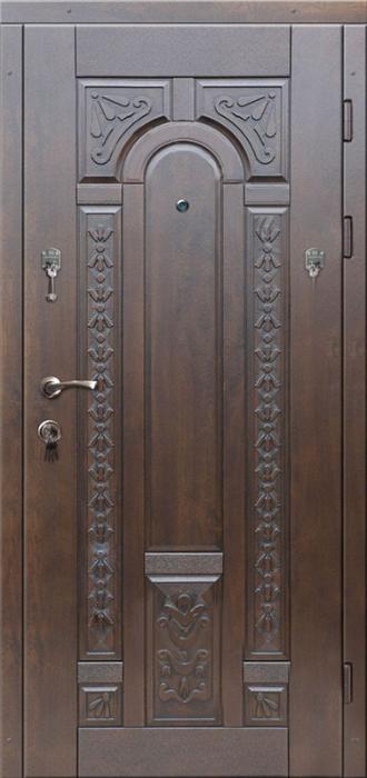 Квартирная дверь МДФ коричневого цвета с красивым узором №535