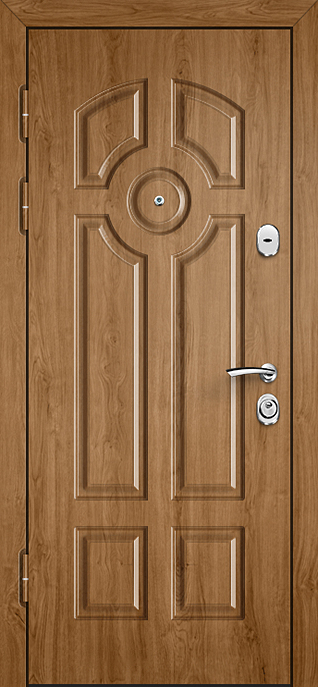 Филёнчатая отделка всегда придаёт дверному полотну особый шарм, создавая эффект глубины и аккуратного рельефа. Входная дверь МДФ с внешней панелью под филёнку №537 универсальна и одинаково хорошо смотрится на фасаде частного дома, в офисе или в квартире. Отделка из МДФ-плиты устойчива к мелким повреждениям, не выгорает и сохраняет аккуратный вид при ежедневной эксплуатации, а при необходимости легко комбинируется с другими декоративными элементами. В основе конструкции — каркас из профильной трубы, лист стали толщиной 2 мм и рёбра жёсткости, обеспечивающие надёжность и жёсткость всей системы. Для удобства и безопасности предусмотрены два замка: сувальдный Просам и цилиндровый Мосрентген. Два контура уплотнения повышают комфорт эксплуатации, а при желании дверь можно дополнить зеркалом, стеклопакетом или коваными вставками, сделав её не только прочной, но и выразительной частью интерьера. Входная дверь МДФ и внешней панелью под филенку №537 от производителя: быстрое изготовление и монтаж в Фряново, индивидуальные размеры, широкий выбор материалов и фурнитуры, официальная гарантия до 10 лет.