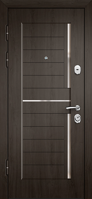 Эстетика и надежность в одном решении — так можно описать современную входную дверь в квартиру №80. Она выполнена на прочном стальном каркасе с листом металла толщиной 2 мм и ребрами жесткости, что обеспечивает устойчивость к взлому и долговечность конструкции. С обеих сторон дверь облицована панелями МДФ ПВХ, которые ценятся за стойкость к механическим повреждениям и стабильный внешний вид даже при интенсивной эксплуатации. Двойной контур уплотнителей снижает проникновение шума и запахов, а при необходимости можно дополнить конструкцию тепло- и шумоизоляцией. Несмотря на лаконичный дизайн, дверь легко подстраивается под разные интерьеры, будь то квартира, частный дом или офисное помещение, сохраняя строгий и в то же время актуальный облик. Современная входная дверь в квартиру №80 от производителя: быстрое изготовление и монтаж в Фряново, индивидуальные размеры, широкий выбор материалов и фурнитуры, официальная гарантия до 10 лет.