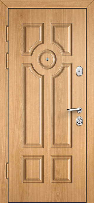 Входная дверь наружная с терморазрывом №24 — это надежное решение для частного дома или коттеджа, сочетающее в себе прочность и высокую тепло- и шумоизоляцию. Внешняя и внутренняя отделка выполнены из МДФ с ПВХ, что придает двери современный и долговечный вид, устойчивый к механическим повреждениям и внешним воздействиям. Терморазрыв в коробке и полотне значительно снижает теплопотери, что особенно важно для сохранения тепла в зимнее время. Тройной контур магнитного уплотнения и пенопласт повышенной плотности обеспечивают отличную шумоизоляцию, создавая комфорт в вашем доме. Усиленная конструкция с ребрами жесткости и противосъёмными блокираторами добавляет безопасности, а замки турецкого производства Kale Kilit обеспечивают надежную защиту. Возможность выбора отделки, а также установка зеркала, стеклопакета или кованых элементов делают эту дверь не только практичной, но и стильной. Дверь наружная с терморазрывом №24 от производителя: быстрое изготовление и монтаж в Фряново, индивидуальные размеры, широкий выбор материалов и фурнитуры, официальная гарантия до 10 лет.