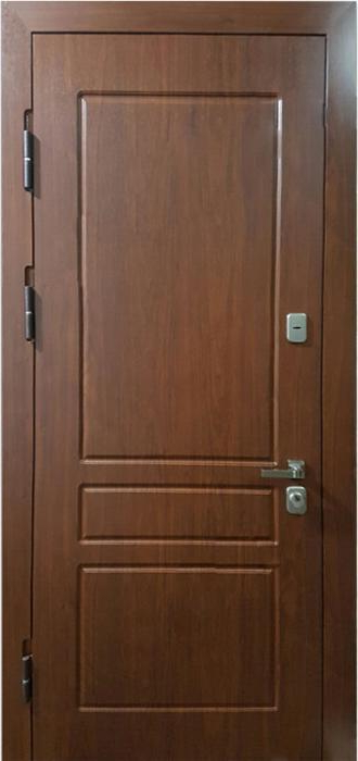 Дверь входная уличная с терморазрывом №41 – это надежная и стильная модель, идеально подходящая для частных домов и коттеджей. Конструкция двери с терморазрывом в коробке и полотне эффективно защищает от холодного воздуха и влаги, обеспечивая стабильный микроклимат внутри помещения. Внешняя и внутренняя отделка из панелей МДФ с ПВХ покрытием не только привлекает внимание своим современным дизайном, но и обеспечивает отличную стойкость к механическим повреждениям, а также долговечность. Металлическое полотно толщиной 1,5 мм с ребрами жесткости из профильных труб гарантирует высокую прочность, а также надежную защиту от взлома. Шумо- и теплоизоляция из пенопласта повышенной плотности создают дополнительный комфорт. Дверь оснащена высококачественными замками Kale Kilit с тремя ригелями, что обеспечивает высокий уровень безопасности. Дверь входная уличная с терморазрывом №41 от производителя: быстрое изготовление и монтаж в Фряново, индивидуальные размеры, широкий выбор материалов и фурнитуры, официальная гарантия до 10 лет.