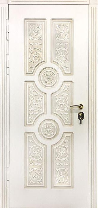 Дверь уличная с терморазрывом №49 — это надежное решение для частных домов и коттеджей, которое обеспечит комфорт и защиту от внешних факторов. С терморазрывом в коробке и полотне, эта дверь исключает проникновение холода, сохраняя тепло в доме и предотвращая появление конденсата. Внешняя и внутренняя отделка выполнена с использованием накладки МДФ, что придает двери привлекательный вид и долговечность, стойкость к механическим повреждениям и атмосферным воздействиям. Ковка, как элемент декора, добавляет изысканности и подчеркивает индивидуальность. Металлическая конструкция с толщиной полотна 1,5 мм и каркасом из профильных труб гарантирует прочность и устойчивость. Уплотнение с тремя контурами магнитного герметика и высокая шумо- и теплоизоляция на основе пенопласта делают дверь идеальной для использования в уличных условиях. Возможность замены замков и добавления стеклопакетов или кованых элементов позволяет индивидуализировать дверное решение под любые потребности. Дверь уличная с терморазрывом №49 от производителя: быстрое изготовление и монтаж в Фряново, индивидуальные размеры, широкий выбор материалов и фурнитуры, официальная гарантия до 10 лет.