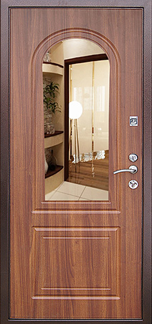 Зеркальная входная дверь в квартире №48 — практичное решение для тех, кто ценит удобство и аккуратный внешний вид. Зеркало внутри избавляет от необходимости в отдельной трюмо или шкафчике с отражающей поверхностью, что особенно удобно в небольших коридорах. Конструкция выполнена на основе прочного стального каркаса с листом металла толщиной 2 мм и усилена рёбрами жёсткости, благодаря чему дверь надёжно защищает от попыток взлома. Накладки МДФ служат не только декоративной отделкой, но и обеспечивают устойчивость к механическим повреждениям и долговечность при ежедневной эксплуатации. Два контура уплотнителя помогают сохранить тишину и тепло в помещении, а возможность выбора размеров и вариантов отделки делает модель универсальной для квартир, частных домов и офисных пространств. Зеркальная входная дверь в квартире №48 от производителя: быстрое изготовление и монтаж в Фряново, индивидуальные размеры, широкий выбор материалов и фурнитуры, официальная гарантия до 10 лет.