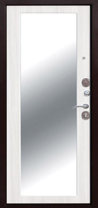 Сдержанный белый цвет придаёт модели лёгкость и визуальную чистоту, а зеркало внутри делает её особенно удобной для городских квартир и офисов, где важна каждая деталь интерьера. Белая входная дверь в квартиру с зеркалом №50 сочетает в себе функциональность и надёжность: прочный стальной каркас из профильной трубы и лист металла толщиной 2 мм обеспечивает защиту, рёбра жёсткости усиливают конструкцию, а два контура уплотнителей помогают снизить проникновение сквозняков и шума. Отделка из МДФ-накладок устойчива к царапинам и не теряет аккуратного вида даже при активной эксплуатации. Зеркальная вставка экономит пространство и делает коридор светлее, а наличие двух замков — сувальдного Просам и цилиндрового Мосрентген — обеспечивает дополнительный уровень безопасности. Белая входная дверь в квартиру с зеркалом №50 от производителя: быстрое изготовление и монтаж в Фряново, индивидуальные размеры, широкий выбор материалов и фурнитуры, официальная гарантия до 10 лет.