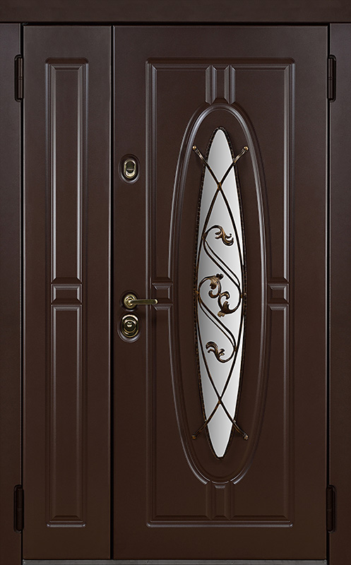 Двойная уличная дверь с овальным стеклом и художественной ковкой №14 — это уникальное сочетание функциональности и эстетики. Панели МДФ с ПВХ-покрытием, используемые как для внешней, так и для внутренней отделки, обладают высокой стойкостью к внешним воздействиям, сохраняя свой внешний вид на долгие годы. Внешний декор в виде художественной ковки придаёт двери особый шарм, подчеркивая её стиль и индивидуальность. Двойная уличная дверь с овальным стеклом и художественной ковкой №14 от производителя: быстрое изготовление и монтаж в Фряново, индивидуальные размеры, широкий выбор материалов и фурнитуры, официальная гарантия до 10 лет.
