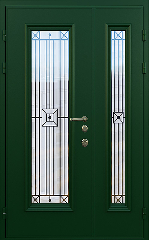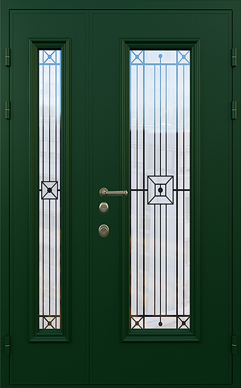 Зеленая полуторная дверь со стеклопакетом для частного дома №18 — это идеальный выбор для тех, кто хочет добавить в свой дом надежность и стиль. Элементы декора, такие как багет и ковка, придают двери элегантный вид, который идеально гармонирует с фасадом загородного дома. Панели МДФ с ПВХ-покрытием, использованные для внешней и внутренней отделки, обеспечивают высокую стойкость к механическим повреждениям и внешним воздействиям, сохраняя прекрасный внешний вид на долгое время. Зеленая полуторная дверь со стеклопакетом для частного дома №18 от производителя: быстрое изготовление и монтаж в Фряново, индивидуальные размеры, широкий выбор материалов и фурнитуры, официальная гарантия до 10 лет.