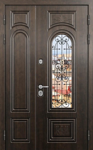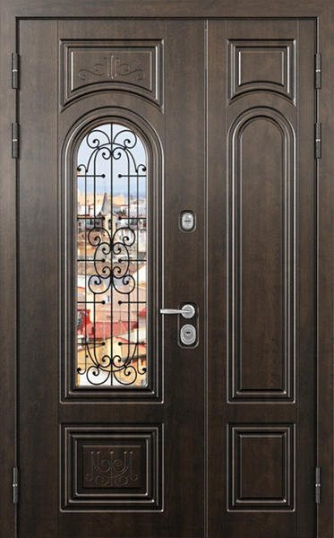 Двупольная стальная дверь со стеклопакетом и кованым узором №24 станет отличным выбором для тех, кто ценит не только безопасность, но и стиль. Внешняя и внутренняя отделка выполнены из МДФ, что придает двери элегантный и современный вид, а также обеспечивает высокую устойчивость к механическим повреждениям и износу. Стеклопакет и кованые элементы добавляют изысканности и уникальности, при этом сохраняя прочность конструкции. Двупольная стальная дверь со стеклопакетом и кованым узором №24 от производителя: быстрое изготовление и монтаж в Фряново, индивидуальные размеры, широкий выбор материалов и фурнитуры, официальная гарантия до 10 лет.