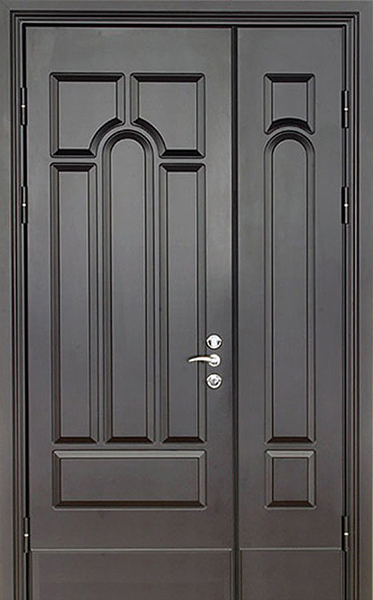 Металлическая двухстворчатая дверь для дома цвета графит №27 – это стильное и надежное решение для вашего жилья. Внешняя и внутренняя отделка выполнены из МДФ, что придает двери изысканный вид и увеличивает её стойкость к механическим повреждениям. Цвет графит придаёт двери современный и элегантный оттенок, который легко впишется в интерьер как частных домов, так и современных офисов. Металлическая двухстворчатая дверь для дома цвета графит №27 от производителя: быстрое изготовление и монтаж в Фряново, индивидуальные размеры, широкий выбор материалов и фурнитуры, официальная гарантия до 10 лет.