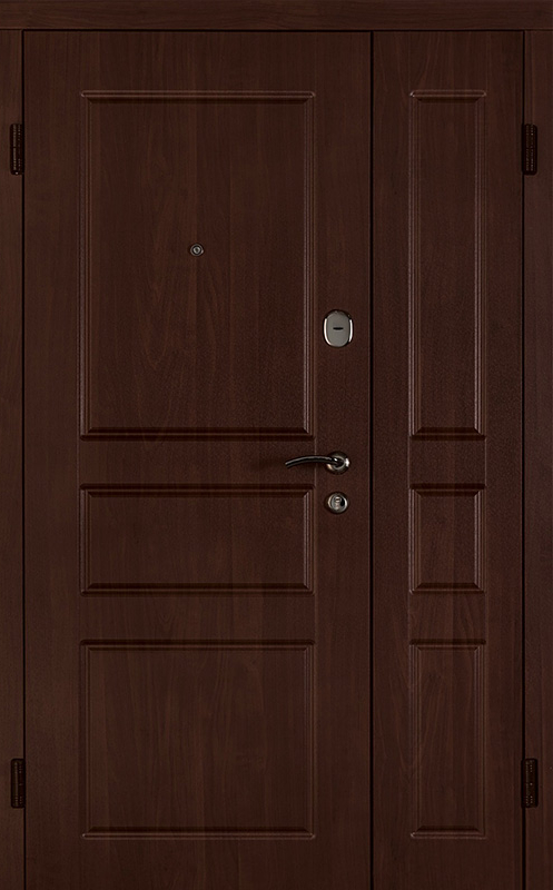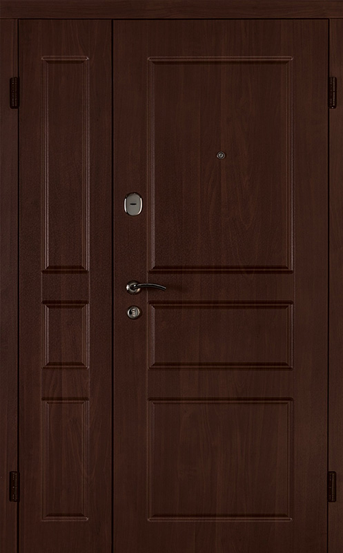 Коричневая входная полуторная дверь с филенчатой створкой №4 – это надежное и стильное решение для вашего дома или офиса. Внешняя и внутренняя отделка из МДФ с ПВХ обеспечивает долговечность и устойчивость к повреждениям, сохраняя при этом элегантный внешний вид. Прочные материалы конструкции, такие как профильная труба 50х25 мм и лист металла толщиной 2 мм, гарантируют стабильность и безопасность. Ребра жесткости из профильных труб 40х25 мм усиливают дверное полотно, а уплотнение с двумя контурами надежно защищает от внешних факторов. Несмотря на отсутствие терморазрыва, в двери реализованы терморазрывы в коробке и полотне, что помогает улучшить теплоизоляцию. Возможность выбора дополнительных опций, таких как шумоизоляция, делает эту дверь универсальной для различных условий эксплуатации. Коричневая входная полуторная дверь с филенчатой створкой №4 от производителя: быстрое изготовление и монтаж в Фряново, индивидуальные размеры, широкий выбор материалов и фурнитуры, официальная гарантия до 10 лет.