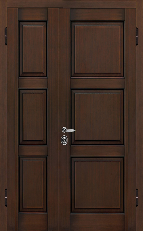 Двойная филенчатая дверь для загородного дома венге №7 сочетает в себе элегантность и прочность. Ее внешняя отделка выполнена из панелей МДФ с ПВХ, что придает двери современный вид, а также обеспечивает устойчивость к механическим повреждениям и долговечность. Каркас из профильной трубы 50х25 мм и полотно толщиной 2 мм гарантируют надежность и устойчивость к нагрузкам. Ребра жесткости из профильных труб 40х25 мм усиливают конструкцию, а уплотнение с двумя контурами защищает от проникновения влаги и пыли. Замки "Просам" и "Мосрентген" с тремя ригелями обеспечивают высокий уровень безопасности. В дверь можно добавить дополнительные элементы, такие как стеклопакет, зеркало или кованые детали, что позволяет адаптировать ее под любой интерьер. Терморазрывы в коробке и полотне способствуют лучшей теплоизоляции, обеспечивая комфорт в любое время года. Двойная филенчатая дверь для загородного дома венге №7 от производителя: быстрое изготовление и монтаж в Фряново, индивидуальные размеры, широкий выбор материалов и фурнитуры, официальная гарантия до 10 лет.