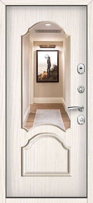 Входная дверь с зеркальной вставкой для прихожей №21 — это не просто надежное, но и стильное решение для частных домов, квартир и офисов. Благодаря прочному каркасу из профильной трубы 50х25 мм и металлическому полотну толщиной 2 мм, дверь гарантирует долговечность и высокую степень защиты. Внешняя отделка с порошковым напылением не только добавляет эстетичности, но и защищает от атмосферных воздействий, а внутренняя отделка из панелей МДФ ПВХ устойчива к механическим повреждениям. Вставка зеркала на двери добавляет современности и практичности, расширяя пространство прихожей. Два контура резинового уплотнителя эффективно предотвращают попадание холода и шума. Дверь оборудована двумя замками, что повышает безопасность. Также можно заменить замки на более современные модели и добавить опции, такие как стеклопакет или видеодомофон, что делает эту модель еще более универсальной. Входная дверь с зеркальной вставкой для прихожей №21 от производителя: быстрое изготовление и монтаж в Фряново, индивидуальные размеры, широкий выбор материалов и фурнитуры, официальная гарантия до 10 лет.