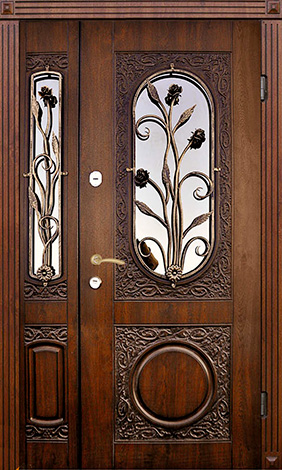Эксклюзивная глянцевая дверь в частный дом с нестандартной фрезеровкой №24