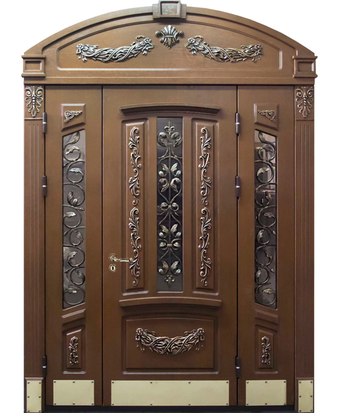 Арка придаёт входу особый характер и сразу выделяет дом среди соседних построек. Арочная входная дверь стеклопакет для загородного дома сочетает в себе статусность массивного дуба и современную практичность стеклопакета, который наполняет прихожую естественным светом и визуально облегчает массивное полотно. Стальной каркас с листом металла толщиной 2 мм и ребрами жёсткости обеспечивает надёжность, а два контура уплотнения защищают от сквозняков. Терморазрыв в коробке и полотне предотвращает промерзание, что особенно актуально для эксплуатации в загородных коттеджах. Натуральный дуб в отделке не только долговечен, но и устойчив к повреждениям, сохраняя презентабельный вид долгие годы. Такая дверь подчёркивает архитектурный стиль дома и позволяет совместить изысканность формы с практичностью современных технологий. Арочная входная дверь стеклопакет для загородного дома от производителя: быстрое изготовление и монтаж в Фряново, индивидуальные размеры, широкий выбор материалов и фурнитуры, официальная гарантия до 10 лет.