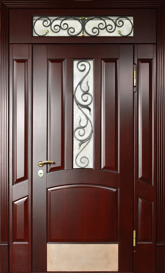 Красивая шпонированная дверь с надежной фурнитурой и ковкой "лоза" №33 идеально дополнит интерьер вашего частного дома или коттеджа. Внешняя и внутренняя отделка выполнены из натурального дерева, что придает двери элегантность и стиль. Профильная труба 50х25 мм используется для каркаса и полотна, а лист металла толщиной 2 мм и ребра жесткости из профильных труб 40х25 мм обеспечивают прочность и долговечность. Несмотря на отсутствие терморазрыва, дверь гарантирует надежную защиту и теплоизоляцию благодаря двум контурам уплотнения. Элементы ковки "лоза" придают двери особое очарование, сочетая практичность с эстетикой. Эта дверь — идеальный выбор для тех, кто ценит стиль, качество и безопасность. Красивая шпонированная дверь с надежной фурнитурой и ковкой "лоза" №33 от производителя: быстрое изготовление и монтаж в Фряново, индивидуальные размеры, широкий выбор материалов и фурнитуры, официальная гарантия до 10 лет.
