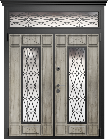 Входная дверь с кованой ручкой и фрамугой №6